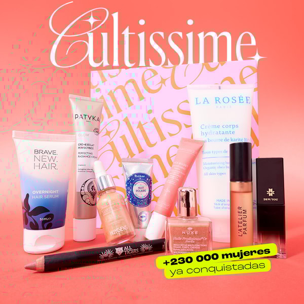 *Oferta reservada para no suscriptores que usen el código CAJA_CULTI, la oferta activa una suscripción mensual de 16,90 €/mes a la caja Blissim, con compromiso de 3 meses. Es imposible desuscribirse durante estos 3 meses. Los cobros de 16,90€ al mes se renovarán automáticamente después de los 3 meses. Oferta válida hasta agotar existencias o hasta el 31.03.2026. No acumulable con otras ofertas promocionales vigentes ni apadrinamiento. Pueden aplicarse cargos adicionales según el método de entrega elegido para la entrega de las cajas. La edición limitada Cultissime y la caja de marzo se enviarán por separado.